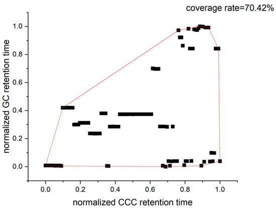 - Semard, G.; Peulon-Agasse, V.; Bruchet, A.; Bouillon, J.-P.; Cardinaël, P. Convex Hull: A New Method to Determine the Separation Space Used and to Optimize Operating Conditions for Comprehensive Two-Dimensional GC. J. Chromatogr. A 2010, 1217, 5449–5454. [Google Scholar] [CrossRef]