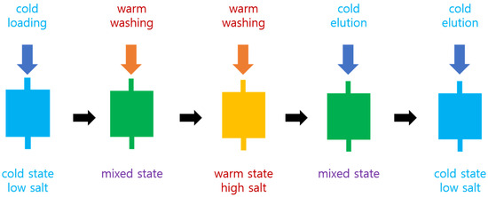 Schematic diagram of aggregation-assisted chromatography. “Cold” and “warm” mean the ice-cold and room temperature, respectively.