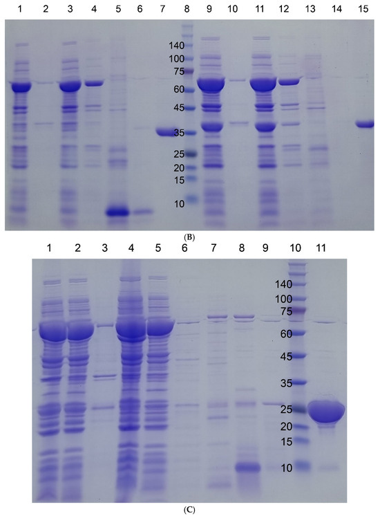 The following supporting information can be downloaded at: https://www.mdpi.com/article/10.3390/separations11120335/s1, Figure S1: SH3BGRL1-I48; Figure S2: GLRX3-I48; Figure S3: GLRX4-I48; Figure S4: I48 ELP; Figure S5: His-malFP2; Figure S6: His-SH3; Figure S7: His-S-protein; Figure S8: Plasmid map of pVP65KR-SacB-I48.