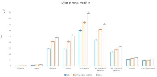 Effect of matrix modifier on the response of VOCs on mass spectrometer.