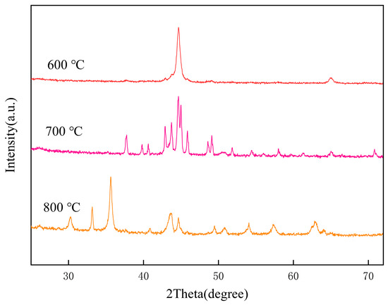 XRD spectra of Fe-MOF-C/N-1:0.5 prepared at different calcination temperatures.