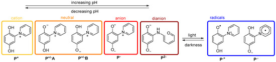 - Schmidt, A.; Albrecht, M.; Mordhorst, T.; Topp, M.; Jeschke, G. Studies on photocatalytically active materials containing structure elements of a pyridinium alkaloid from Punica granatum. J. Mater. Chem. 2007, 17, 2793–2800. [Google Scholar] [CrossRef]