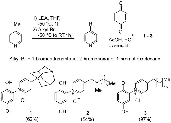 - Schmidt, A.; Mordhorst, T. Conjugated, cross-conjugated, and pseudo-cross-conjugated derivatives of a pyridinium alkaloid from Punica granatum. Arkivoc 2003, 14, 233–245. [Google Scholar] [CrossRef]
