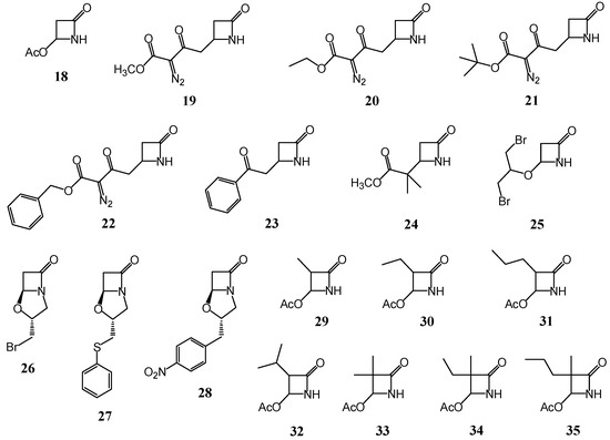 Chemical structures of β-lactam compounds 18–35 separated by Okamoto et al [14].