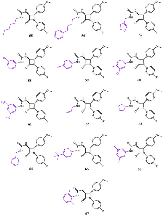 Chemical structures of (±)-trans-β-lactam ureas 55–67.