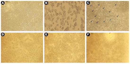 Anticancer activity of green synthesized Mc-AgNPs. (A) MCF-7 control; (B) MCF-7 treated with doxorubicin; (C) MCF-7 treated with Mc-AgNPs; (D) Vero cell line control, and (E) Vero cell line treated with doxorubicin; (F) Vero cell line treated with Mc-AgNPs.