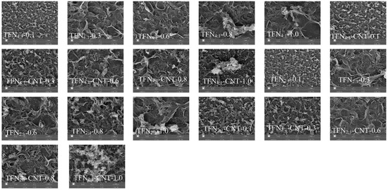 Surface morphology of TFN membranes under different loading concentrations of liposomes (magnification, 15,000×).