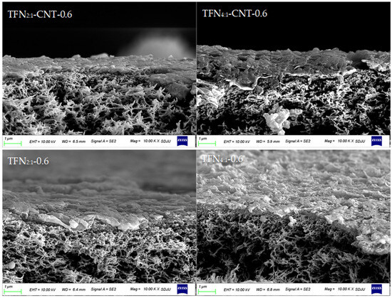Cross-section images of TFN membranes under 0.6 mg/mL loading concentration of liposomes and CNT liposomes.