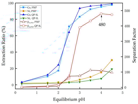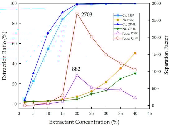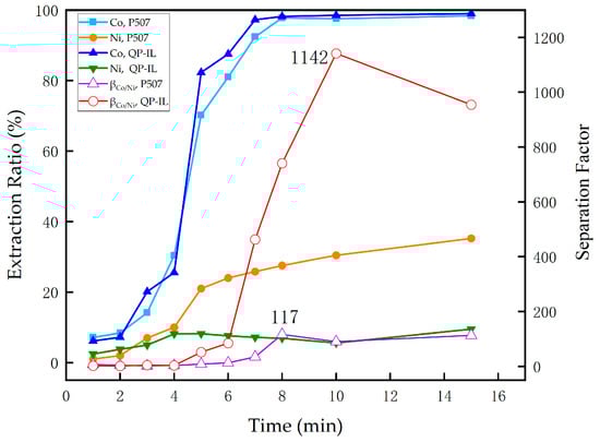 3.3. Effect of Different Factors on Extraction for Co and Ni