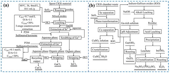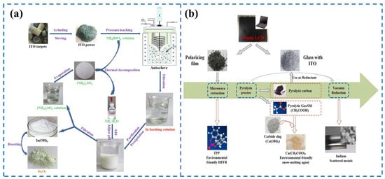 Flowchart of indium recovery from (a) waste ITO targets (Fan et al. [34]) and (b) LCDs (Wang et al. [83]).