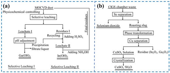 - Ma, B.; Li, X.; Liu, B.; Xing, P.; Zhang, W.; Wang, C.; Chen, Y. Effective Separation and Recovery of Valuable Components from CIGS Chamber Waste via Controlled Phase Transformation and Selective Leaching. ACS Sustain. Chem. Eng. 2020, 8, 3026–3037. [Google Scholar] [CrossRef]