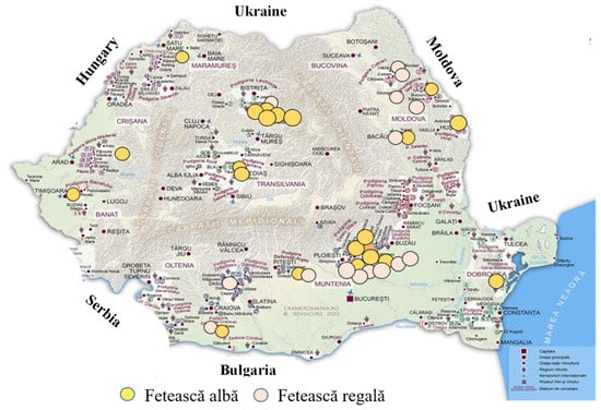 - Harta A3 Podgorii Spate Romana 2023. Available online: https://www.crameromania.ro/upload/HartaA3podgoriispate%20romana%202023.png (accessed on 26 January 2024).
