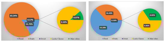 | 20. | Aldehydes/ Ketones | Ionone | Violet, Wood, Floral [30,33] | 0.9 ppb |