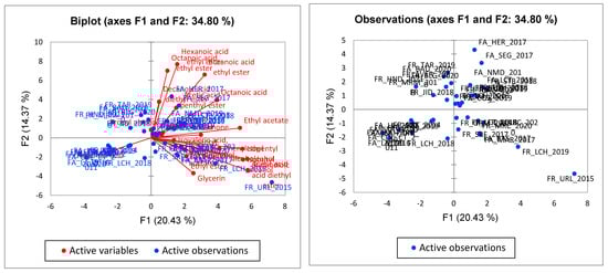 - Tao, Y.-S.; Li, H. Active Volatiles of Cabernet Sauvignon Wine from Changli County. Health 2009, 1, 176–182. [Google Scholar] [CrossRef]