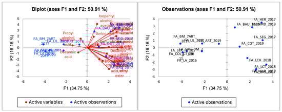 3.4. Statistical Analysis of Wine Samples Based on HS SPME/GC-MS Data