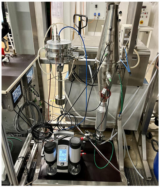 Pt100 sensors with a diameter of 3 mm are used to measure the temperature in the fixed bed as well as the temperature of the supply air after the heat exchanger. Due to the low inert mass of the sensors, they react immediately to temperature changes and provide reliable data. The humidity sensors, which are installed in the conical pipes, measure not only the relative humidity but also the temperature. Pressure sensors in the conical pipes monitor the pressure loss across the fixed bed. However, due to the low bed height and low gas velocity, the pressure loss is <1 mbar and can therefore be neglected. Table 2 shows a list of the sensors used for the investigations. This is sufficient for adsorption measurements before and after the fixed bed. However, since the gas stream from the vacuum pump is almost pure CO2, it is mixed with a defined quantity of nitrogen. To obtain a homogeneous mixing of the gases and to avoid introducing counterpressure into the vacuum pump, the nitrogen is fed straight through a T-piece. At the same time, the CO2 flows in laterally through a taper.
