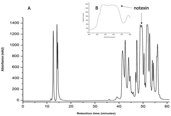- Chwetzoff, S.; Mollier, P.; Bouet, F.; Rowan, E.C.; Harvey, A.L. On the purification of notexin Isolation of a single amino acid variant from the venom of Nutechis scutatus scutatus. FEBS Lett. 1990, 261, 226–230. [Google Scholar] [CrossRef] [PubMed]