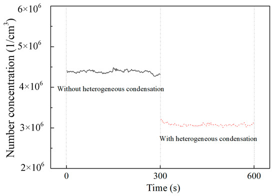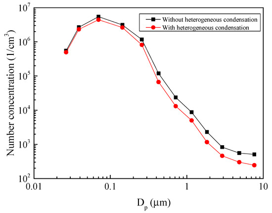 The effect of heterogeneous condensation on number concentration of fine particles.