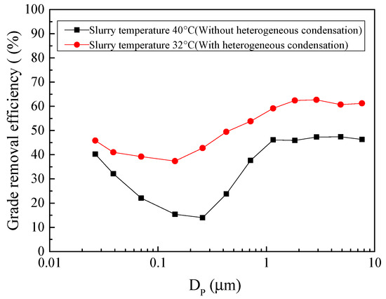 The effect of heterogeneous condensation on grade removal efficiency of fine particles.