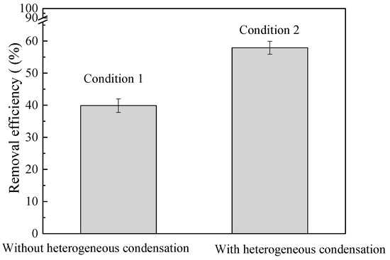 The removal efficiency of fine particles with and without heterogeneous condensation.