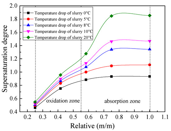 The effect of temperature drop of desulfurization slurry in absorption zone on supersaturation distribution in desulfurization tower.