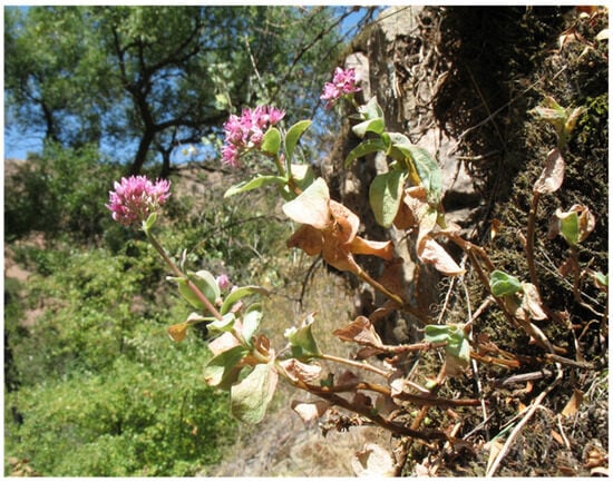 - Jovanović, S.Č.; Jovanović, O.P.; Mitić, Z.S.; Golubović, T.D.; Zlatković, B.K.; Stojanović, G.S. Volatile profiles of the orpines roots: Hylotelephium telephium (L.) H. Ohba, H. maximum (L.) Holub and H. spectabile (Boreau) H. Ohba x telephium (L.) H. Ohba. Flavour Fragr. J. 2017, 32, 446–450. [Google Scholar] [CrossRef]