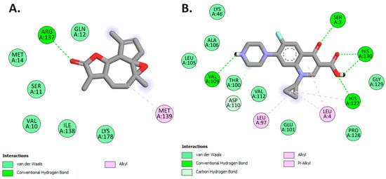3.10.2. Interactions with Dihydrofolate Reductase (PDB: 4M6J): Antibacterial Activity