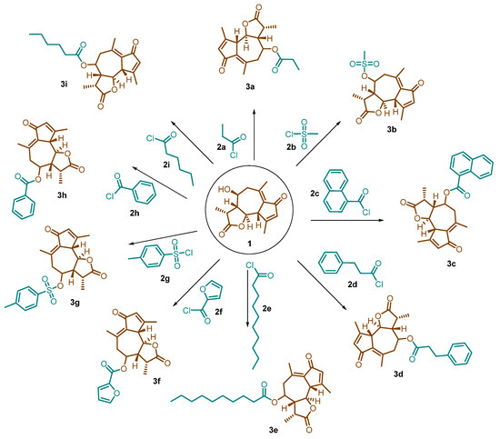 2.2.2. General Procedure for the Preparation of Desacetylmatricarin Derivatives (3a–3i)