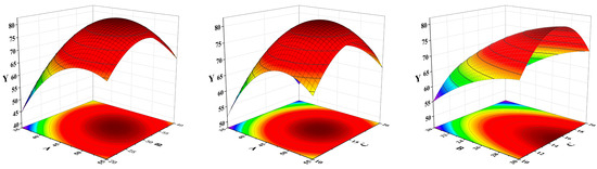 A larger value of f indicates a more significant fit, with a p-value < 0.05 indicating the goodness of fit of the model. This model is appropriate, as can be seen from Table 1. From Equation (1) and Figure 2, it is shown that A, B, C, AB, and BC had a synergistic effect on the spiked recovery of α-terpineol samples. Extraction time (A) and solvent-to-sample volume ratio (C) had a significant effect on the spiked recovery of α-terpineol.