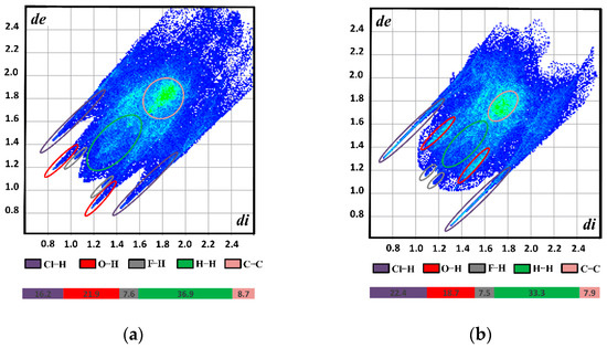 The representation of the 2D fingerprint plot for CIP (a) form I and (b) form II. The reciprocal contacts were included.