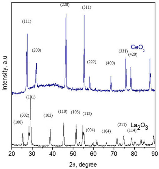 WAXD patterns of La2O3 and CeO2 are shown in Figure 2.