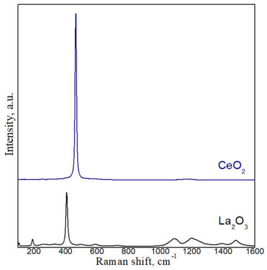 Raman spectra in the range of 100–1600 cm−1 for CeO2 and La2O3 photocatalysts are displayed in Figure 4.
