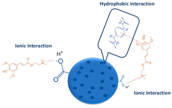 The improvement of desorption using acidified ethanol clearly indicates that a part of sinapine is adsorbed only by the ionic bonds, whereas another one is fixed throughout both the hydrophobic and ionic bonds. Figure 5 illustrates the different possible interactions between resin and sinapine.