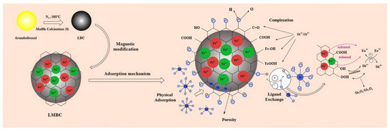 Schematic diagram of the mechanism of Sb adsorption and removal by LMBC.