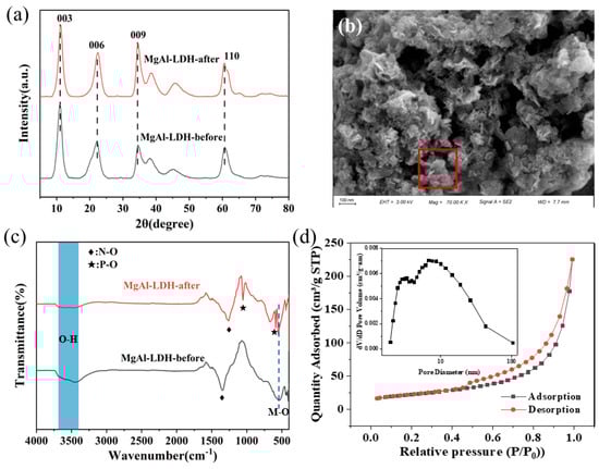 - Zeng, B.; Wang, Q.; Mo, L.; Jin, F.; Zhu, J.; Tang, M. Synthesis of Mg-Al LDH and its calcined form with natural materials for efficient Cr (VI) removal. J. Environ. Chem. Eng. 2022, 10, 108605. [Google Scholar] [CrossRef]