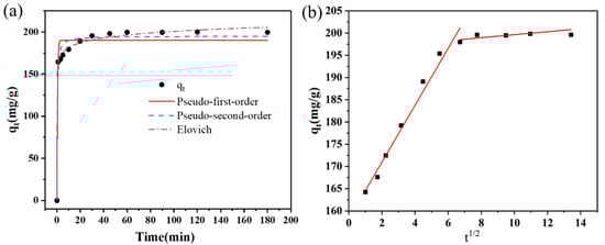 | qe (exp)/ (mg·g−1) | qe (cal)/ (mg·g−1) | k1/ (min−1) | R2 | qe (cal)/ (mg·g−1) | k2/ g·(mg·min)−1 | R2 | α | β | R2 |