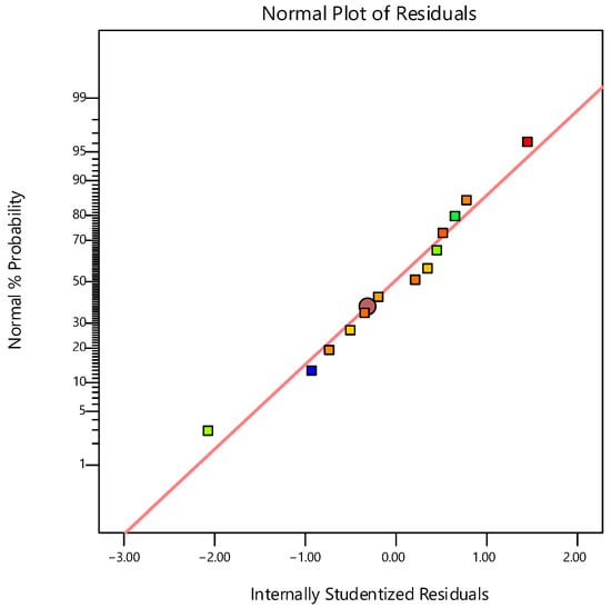 In addition, model adequacy is often evaluated by analyzing residuals, typically through the construction of a normal probability plot. Figure 1 presents the normal probability plot of internally studentized residuals for the reduced cubic model.