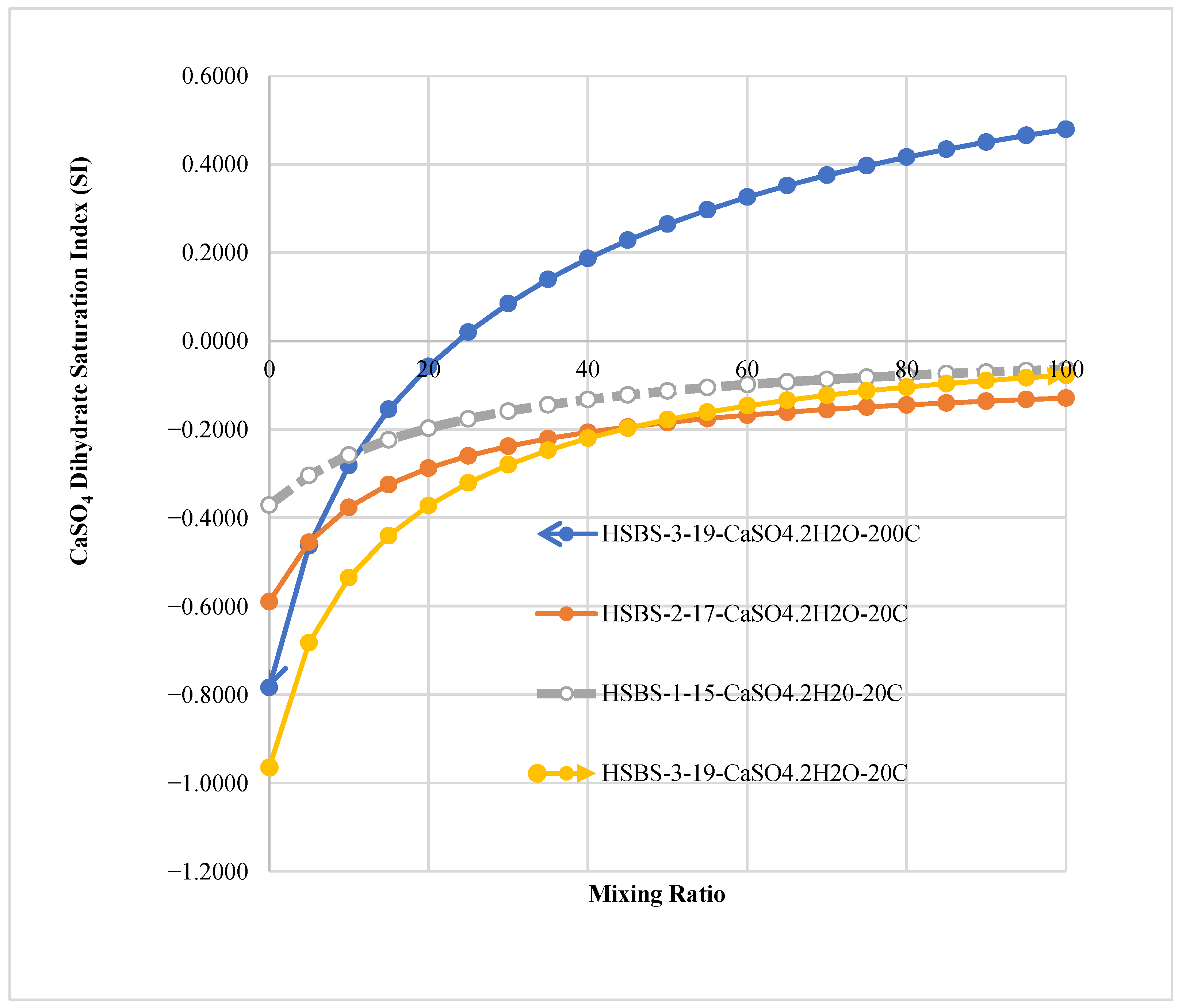 - Templeton, C.C.; Rodgers, J.C. Prediction of Anhydrite Precipitation in Field Water-Heating Systems. J. Pet. Technol. 1960, 20, 423–432. [Google Scholar] [CrossRef]