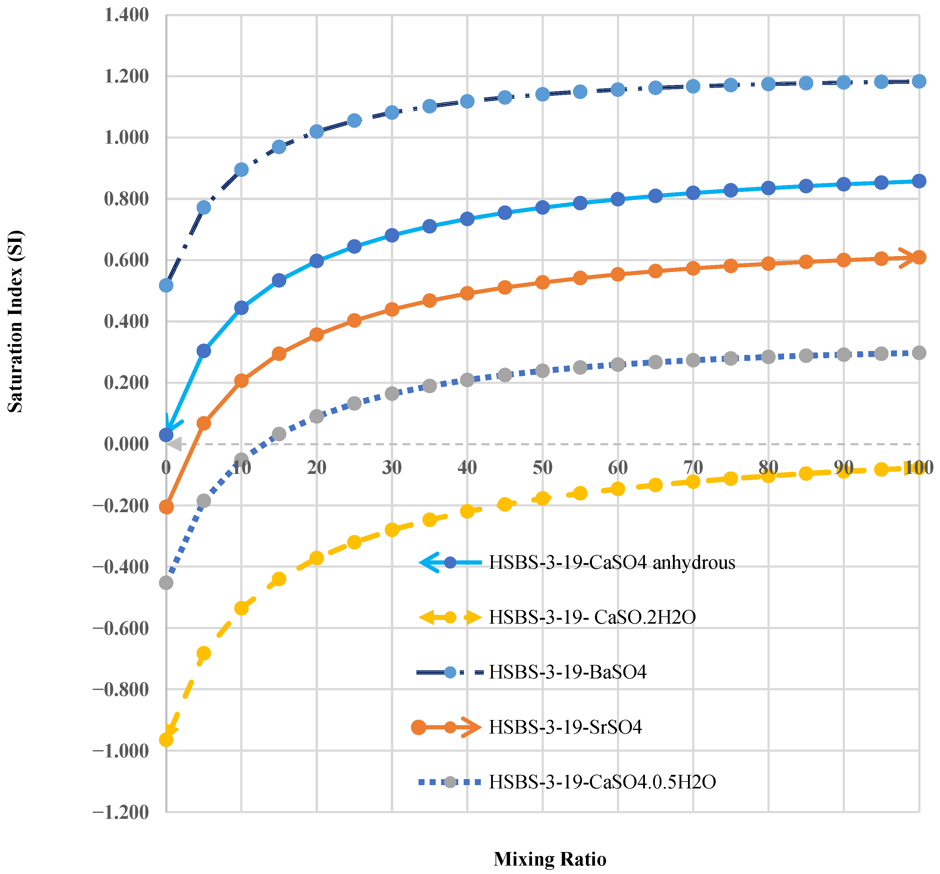 3.3. The Saturation Index of SMs in Mixed Solutions