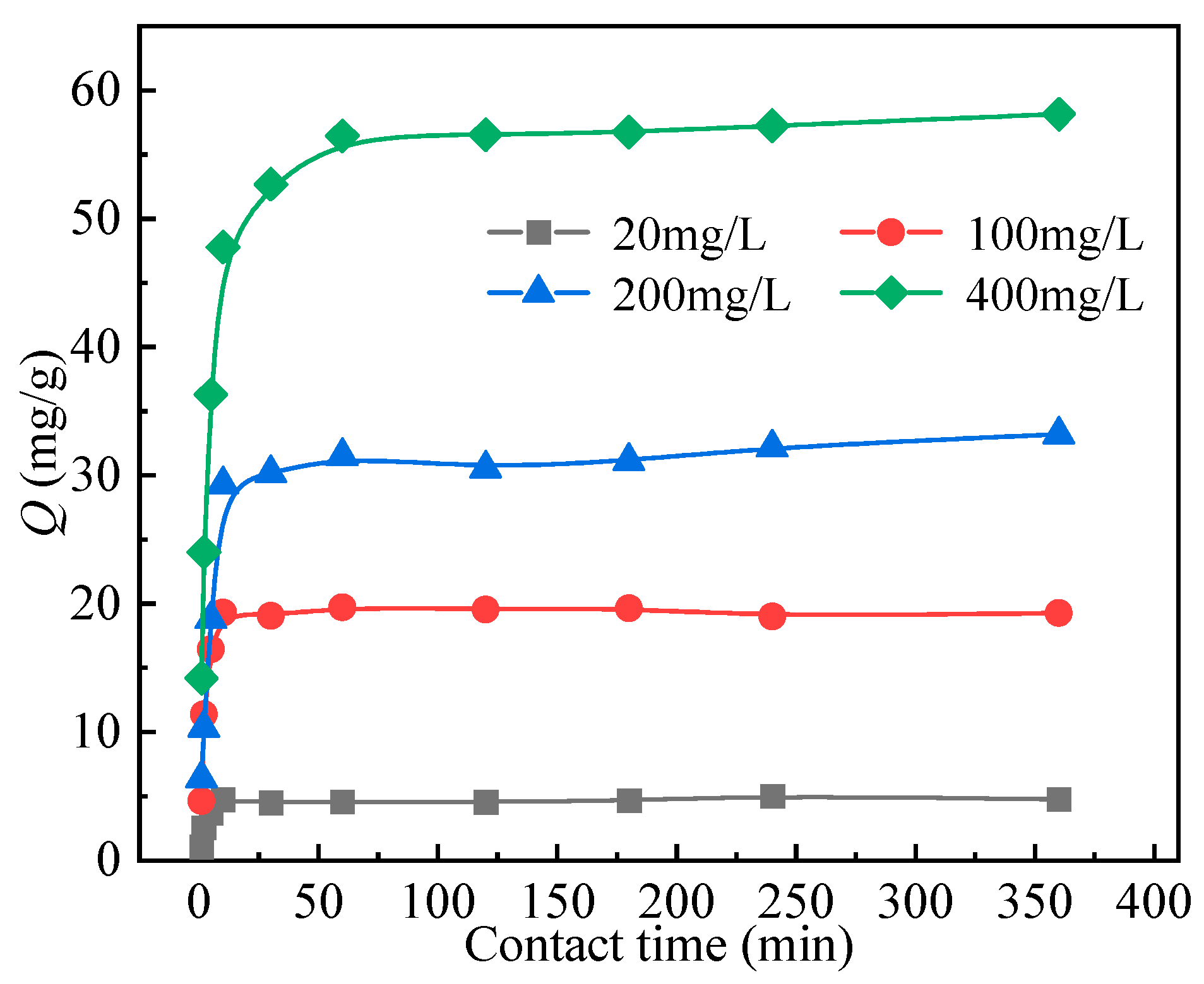3.4. Effect of Initial Ion Concentration of Cr(III)