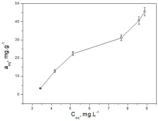 The most commonly used adsorption isotherm equations that describe the relationship aeq = f(Ceq) are Langmuir, Freundlich, and Dubinin–Radushkevich isotherms (Equations (3)–(5)).