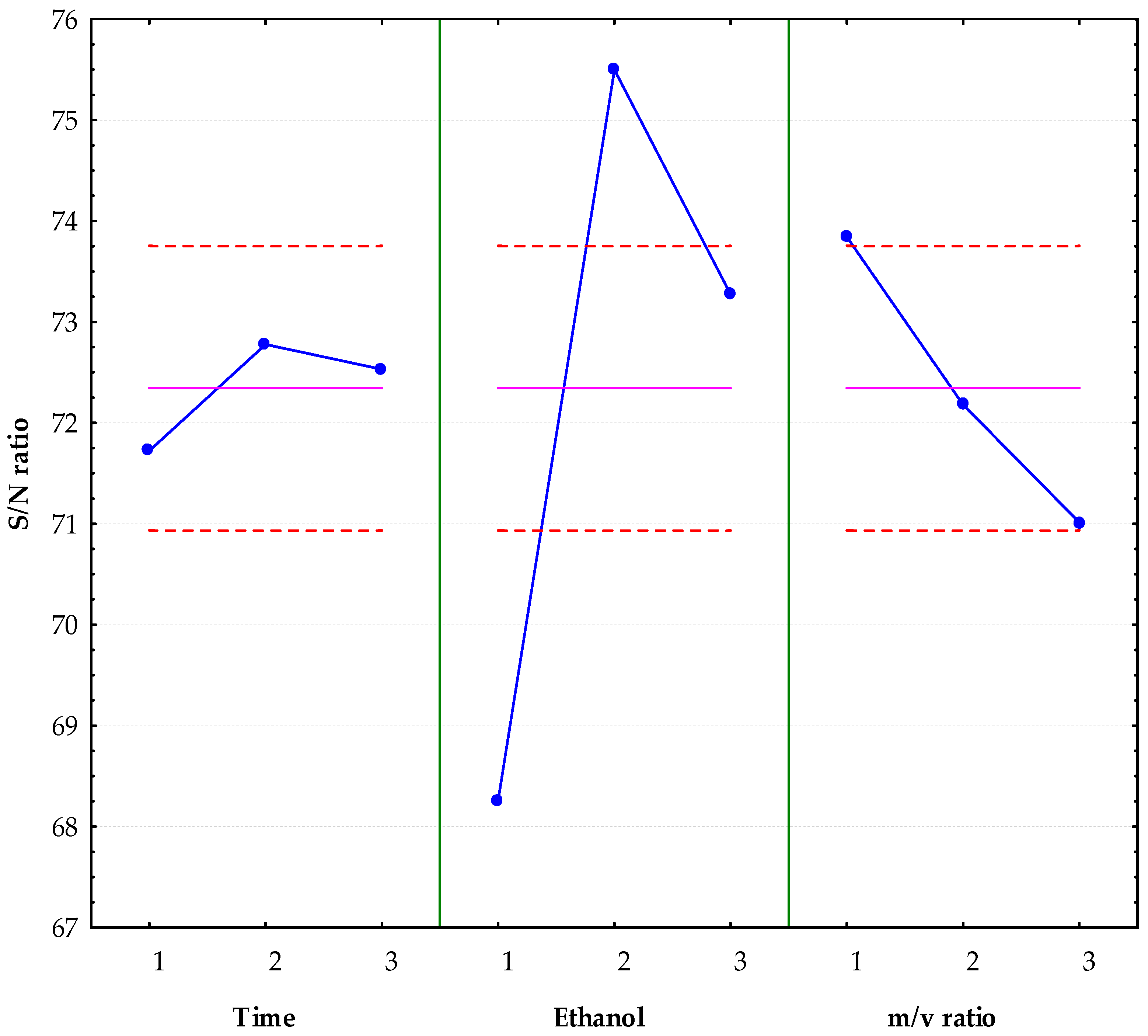 Treatment | Time | Ethanol | Mass/Solvent Ratio |