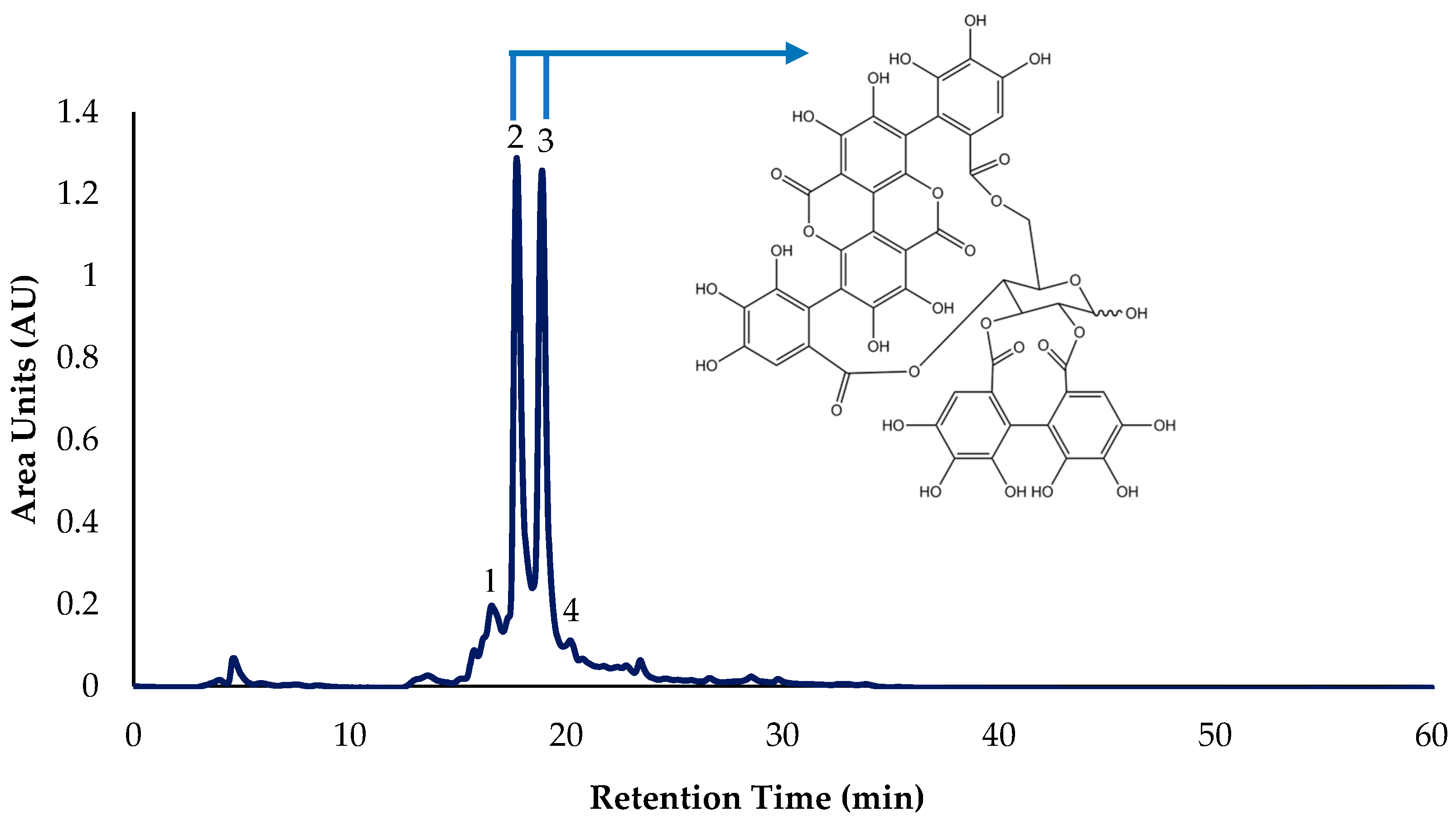 3.4. Flash Chromatography and Semipurification of Ellagitannins
