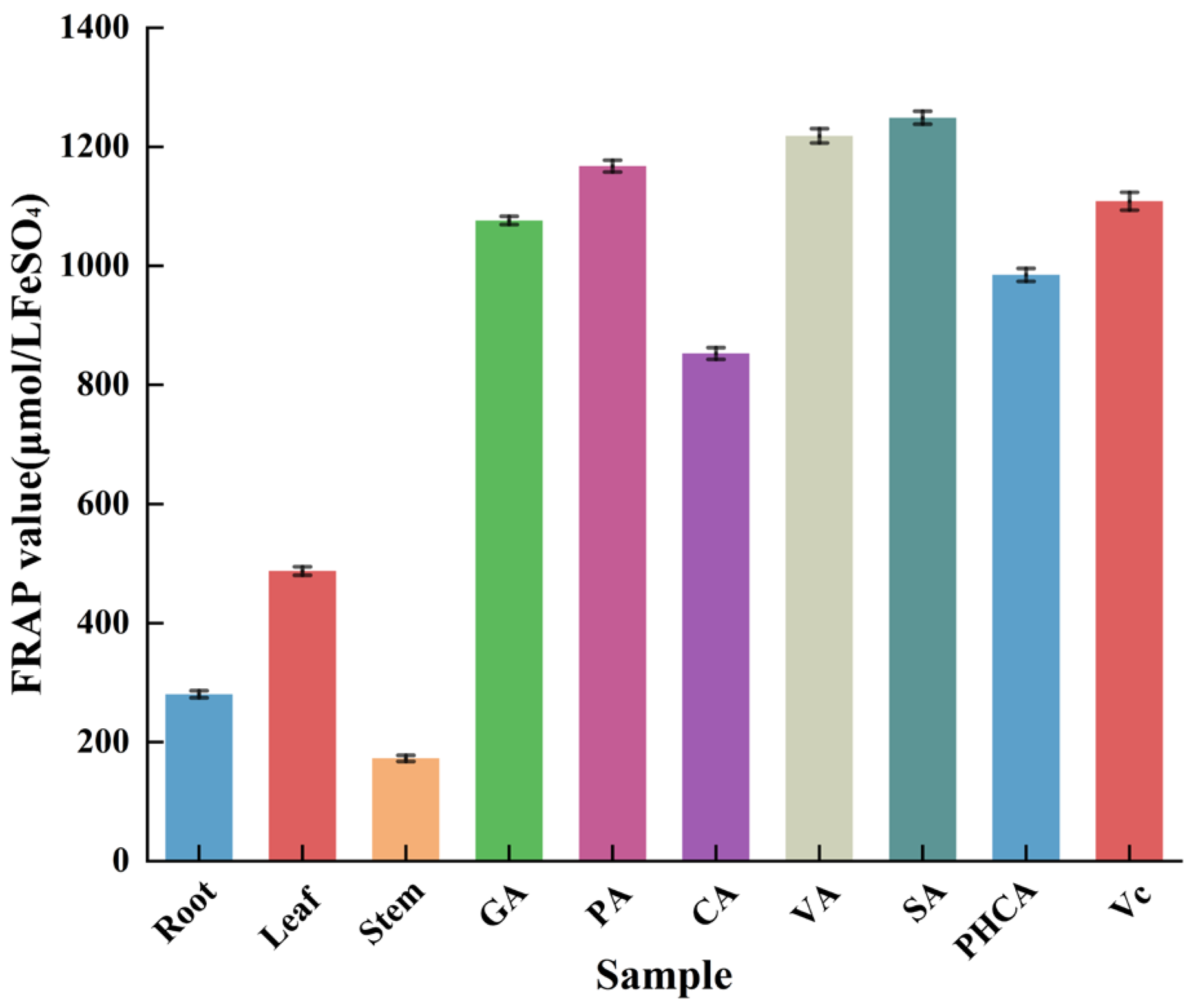 3.6.1. The FRAP of Extracts and Six Phenolic Acids