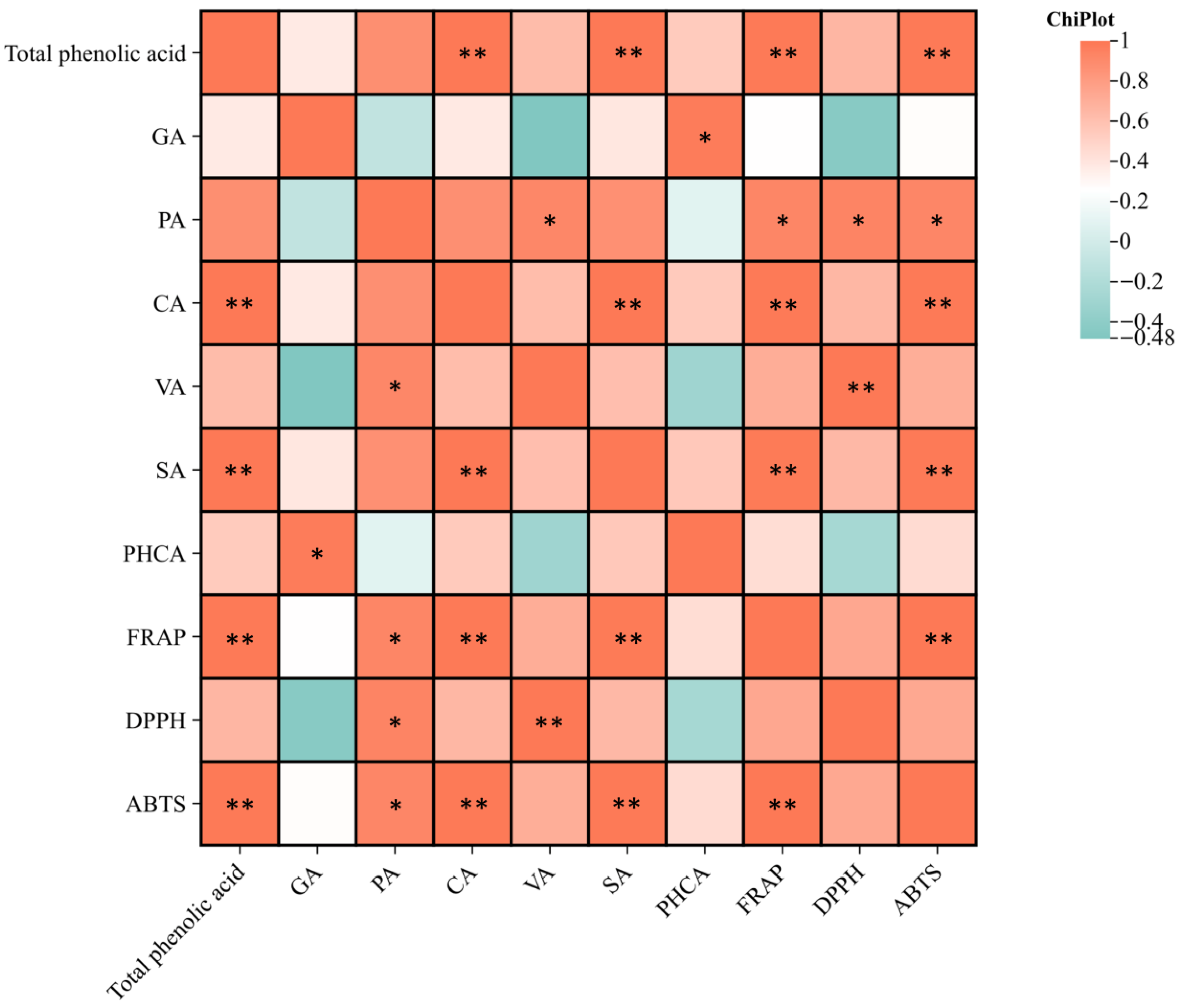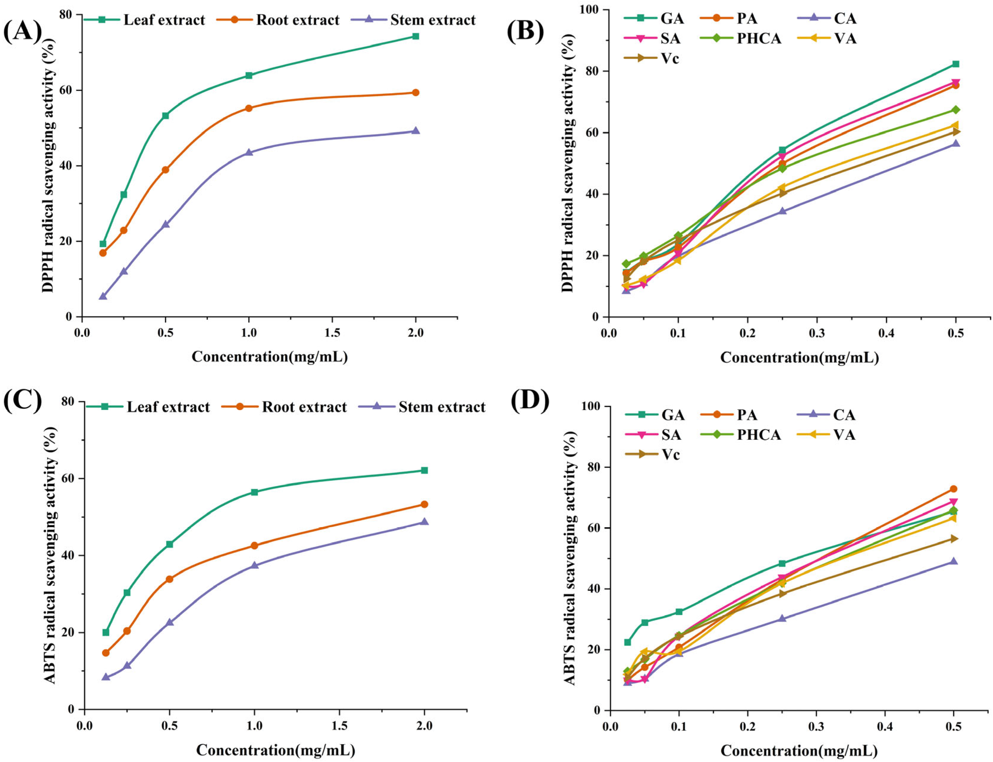 3.6.3. The ABTS of Extracts and Six Phenolic Acids