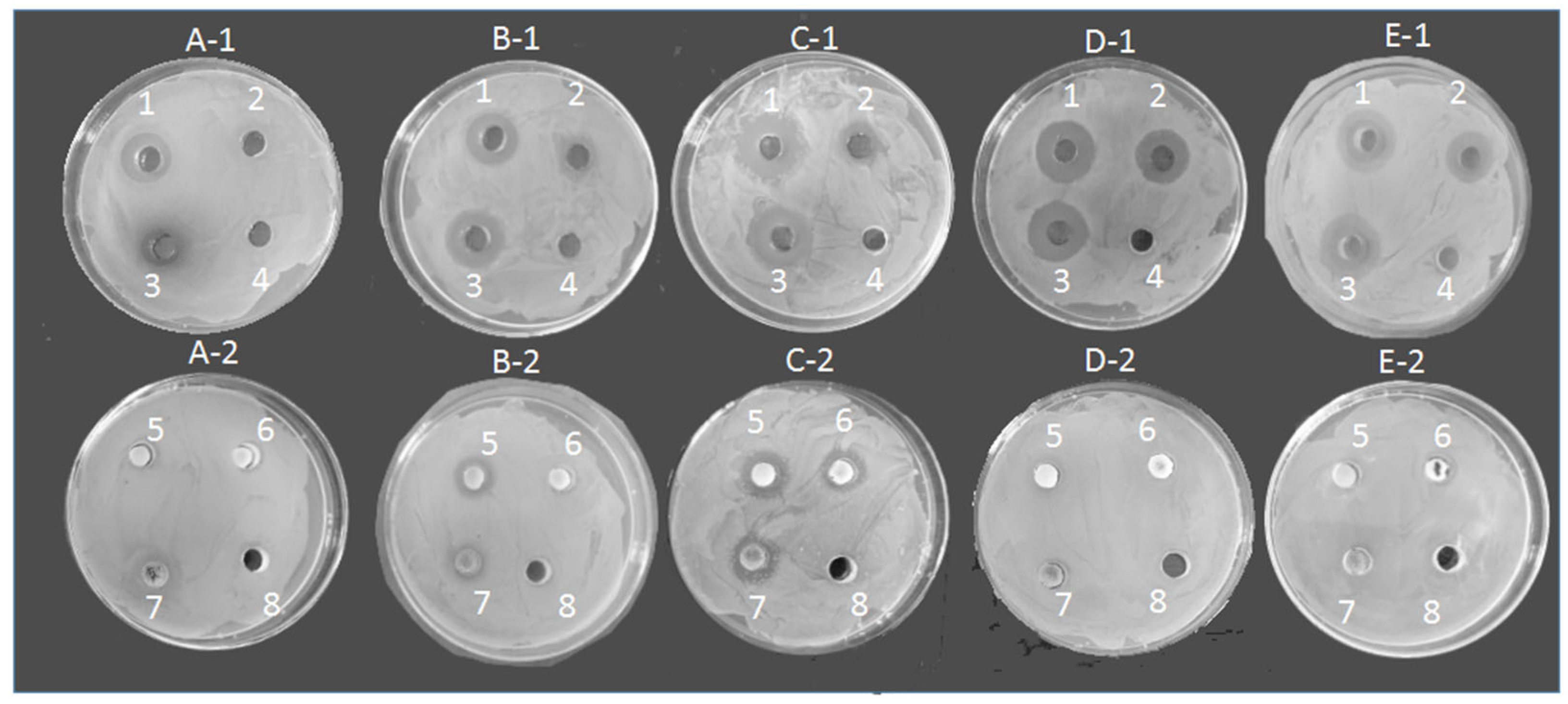 | S. aureus | C. albicans | P. aeruginosa | B. subtilis | E. coli | |