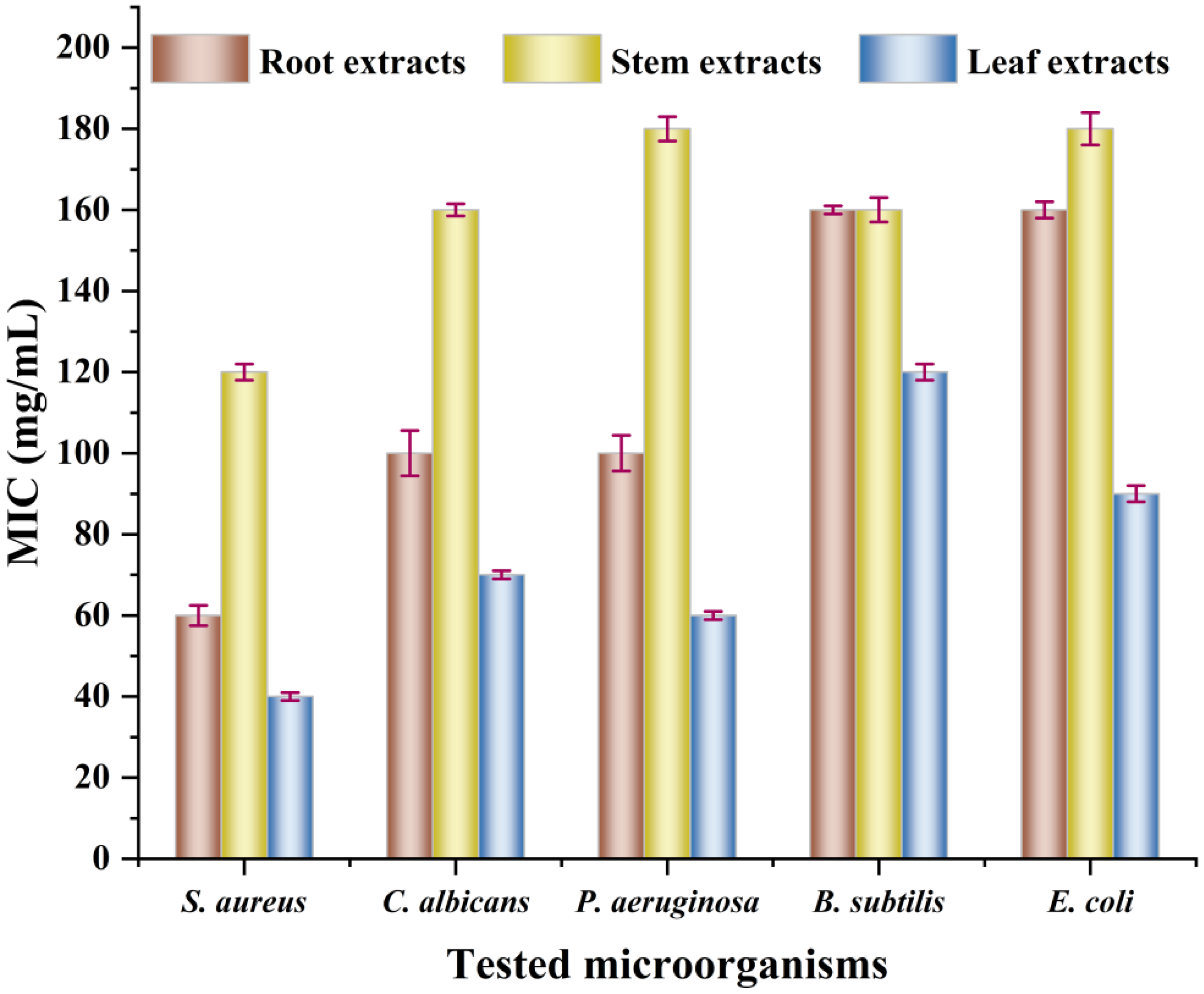 3.8.1. The Minimum Inhibitory Concentrations of Extracts from Different Parts