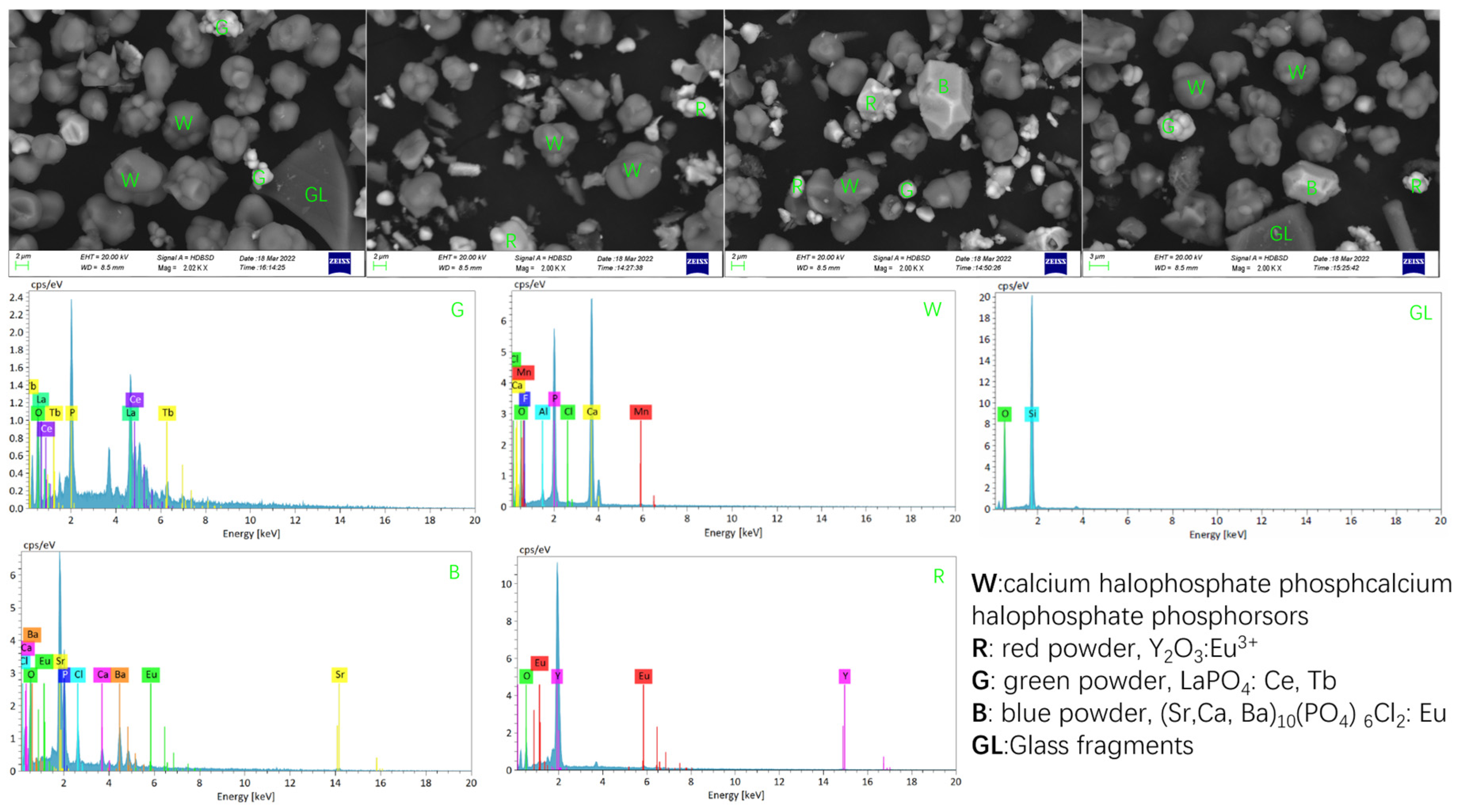 - Chang, T.C.; Wang, S.F.; You, S.J.; Cheng, A. Characterization of Halophosphate Phosphor Powders Recovered from the Spent Fluorescent Lamps. J. Environ. Eng. Manag. 2007, 17, 435–439. [Google Scholar]