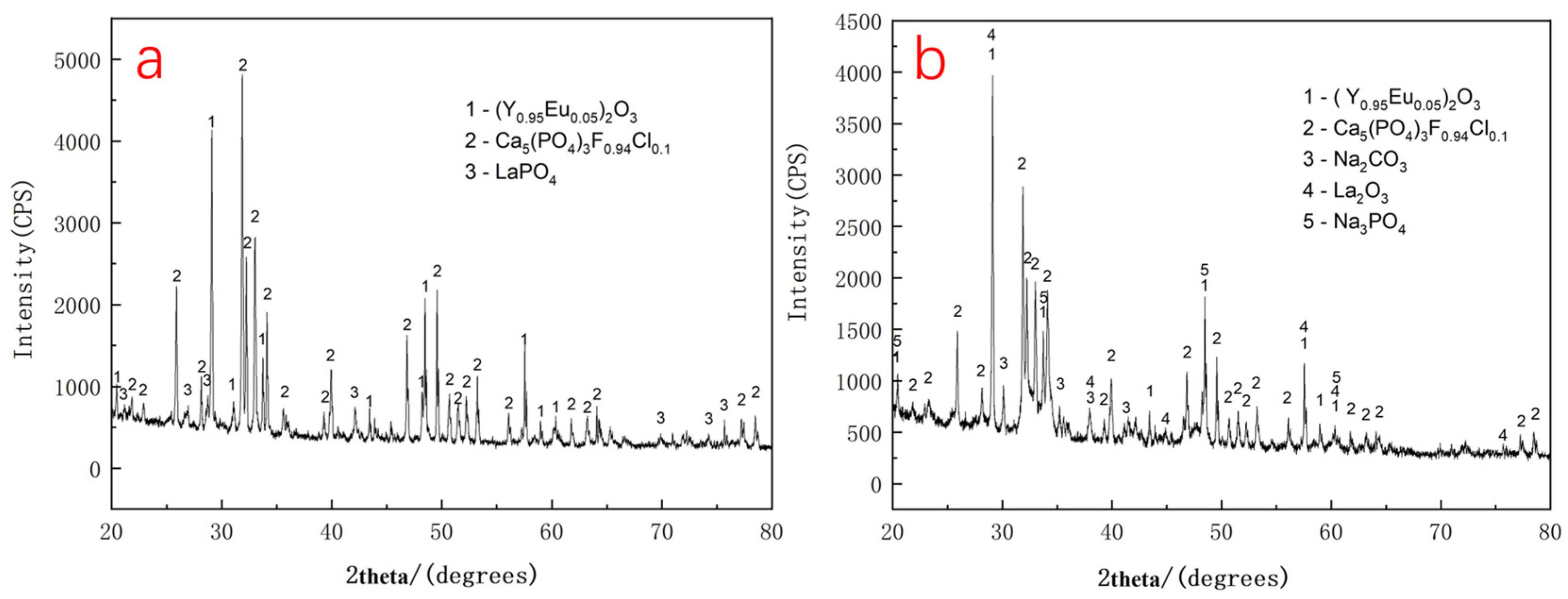- As the temperature further increased to 712 °C, a pronounced exothermic peak emerged, accompanied by a significant mass loss of 9.73 wt%. This indicates the occurrence of a reaction between the waste phosphor and sodium carbonate. Accordingly, the decomposition temperature of the waste phosphor in the alkaline medium is determined to be within the range of 620–867 °C.