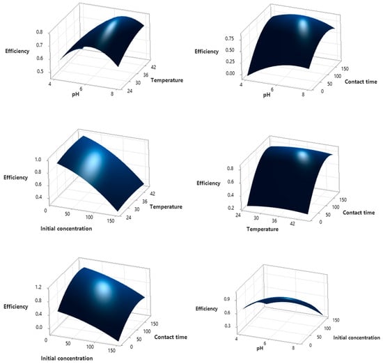 The results obtained using the Box–Behnken design are presented in Figure 4. The analysis of variance (ANOVA) for the investigated model is shown in Table S3.